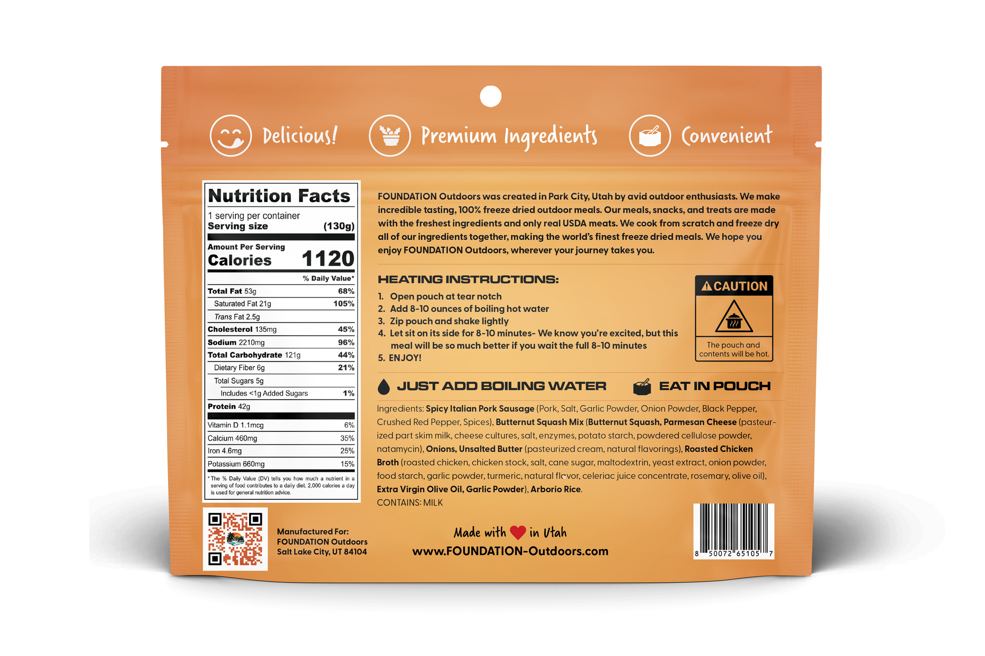 FOUNDATION Outdoors Spicy Italian Pork Sausage Risotto Meal